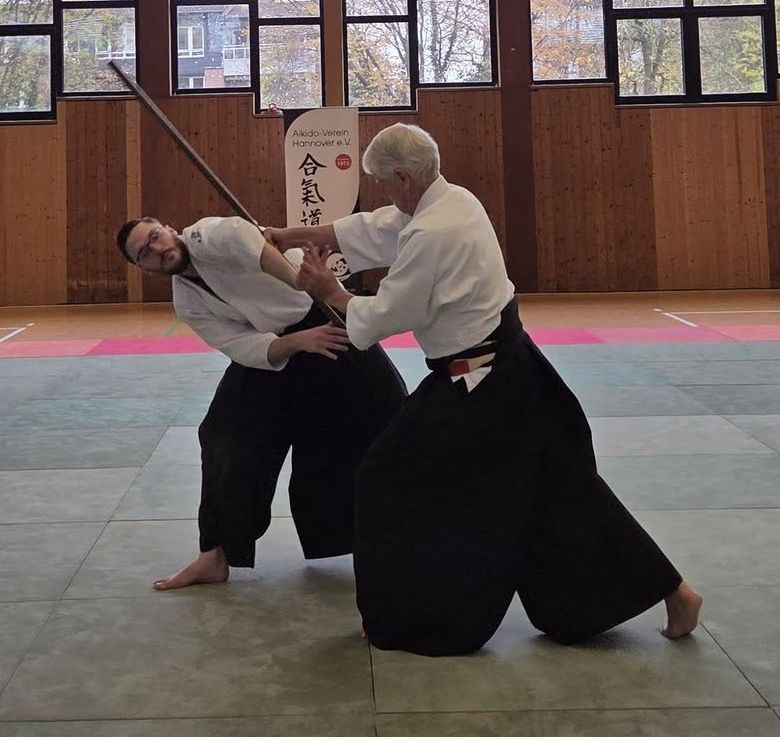 Rund fünfzig Aikidoka aus dem mittleren und nördlichen Deutschland fanden sich am Wochenende des 8. und 9. Novembers 2025 zum Bundeslehrgang mit Alfred Heymann (8. Dan, TK-Mitglied) beim Aikido-Verein Hannover ein. „Die Sonne ist da, aber etwas steht davor.“ – mit diesen Worten kommentierte Alfred das ideale Hallenwetter an diesem trüben und bewölkten Novemberwochenende.
