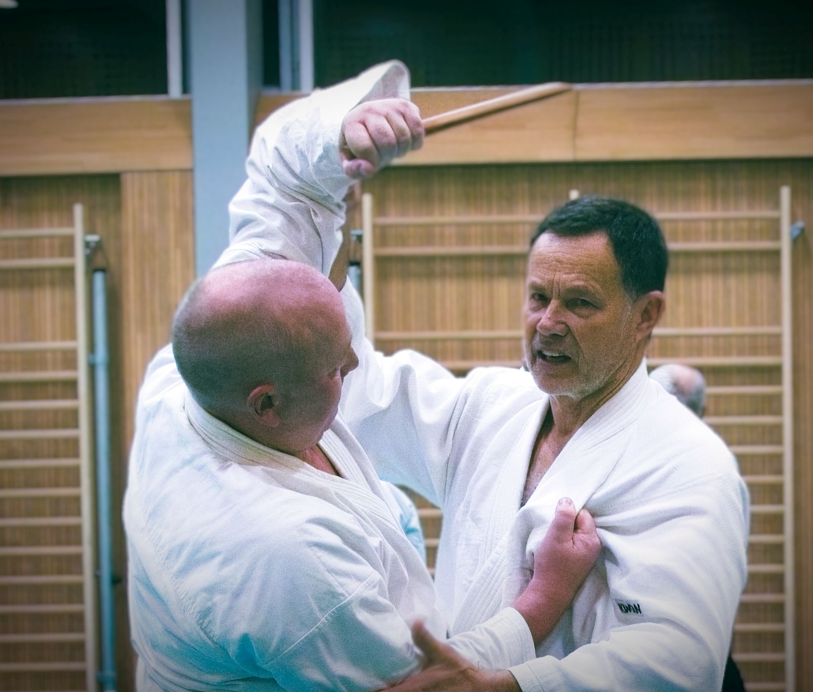 Die Trainingseinheiten am Samstagnachmittag und Sonntagvormittag waren geprägt von anspruchsvollen Inhalten: Techniken für den 4. und 5. Dan, Messertechniken, Morote-Waza und Randori. Hubert Luhmann vermittelte nicht nur präzise Technik, sondern auch die Philosophie dahinter – mit Humor und Tiefgang: